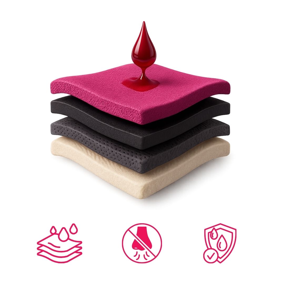 Protección real en el agua. Tecnología absorbente de triple capa para flujo ligero o medio. Diseños para todos los estilos. Materiales seguros y sostenibles. Tejidos certificados, hipoalergénicos y libres de tóxicos. Fáciles de lavar y reutilizables.
